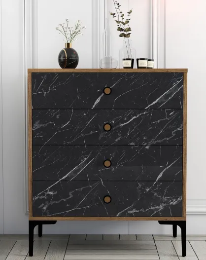 Cómoda Lisbon 541 nogal/negro - 76x90,7x40 cm