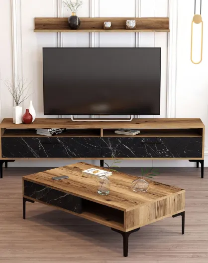 Set de sala de estar Istanbul con 3 muebles de nogal y negro