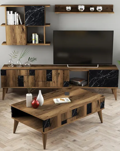 Set de sala de estar Istanbul con 3 muebles de nogal y negro