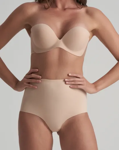 Sujetador de balcón adhesivo sin tirantes con alas transparentes de color beige