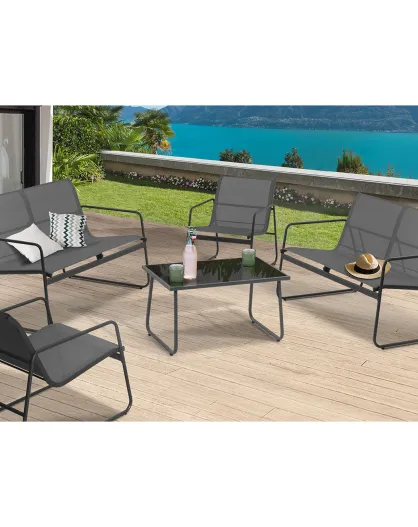 Mobiliario de jardín Ozéa de 4 plazas en metal y gris antracita/cuerda de ratán