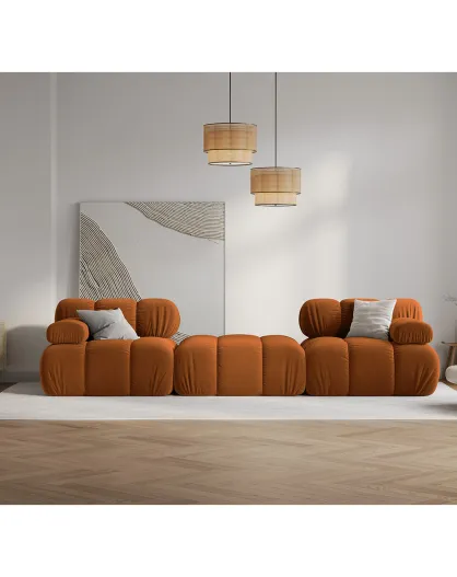 Sofá modular recto Tropea de terciopelo terracota de 4 plazas - 285x157x63 cm