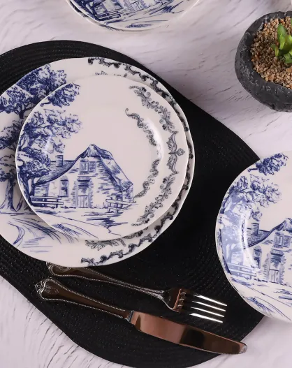 6 platos de postre y 1 expositor transparente - D.21 cm