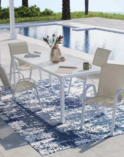 4 sillas de jardín apilables de textileno blanco/beige - 51,5 x 68 x 84 cm