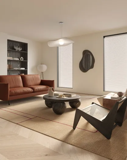 Gran sofá o sofá panorámico Misak de piel camel - 315x92x85
