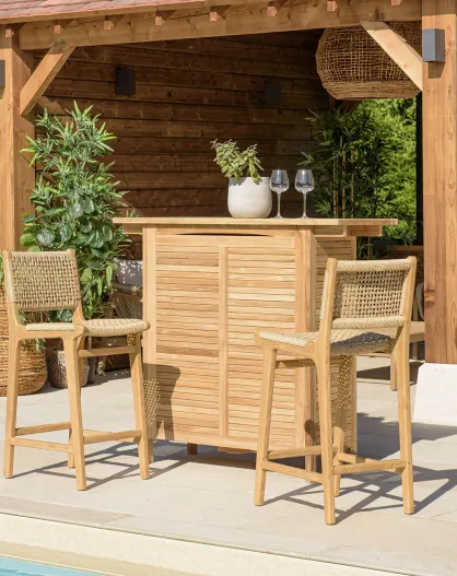 2 taburetes de jardín de madera de ratán sintético de teca - 41x53x97 cm