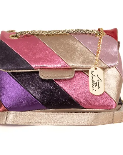 Bandolera Bettina de piel rosa - 22x19x8 cm