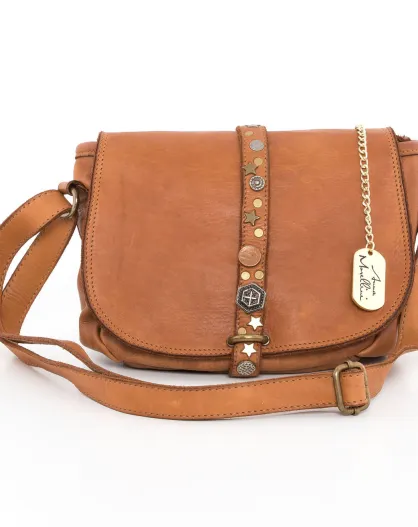 Bandolera Luigia de piel coñac - 23x19x9 cm