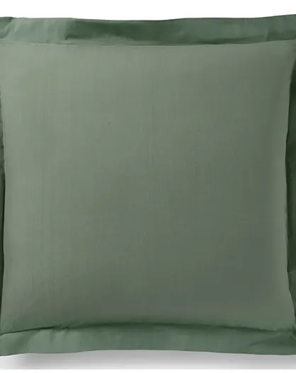 Funda de almohada de percal de algodón lavado verde agua con volante