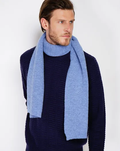 Pañuelo azul vaquero acanalado en mezcla de cachemir - 170x30 cm