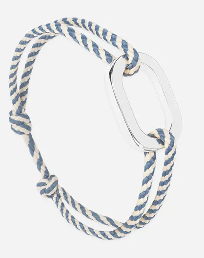 Brazalete de eslabones planos Bosse bañado en plata azul marino/beige