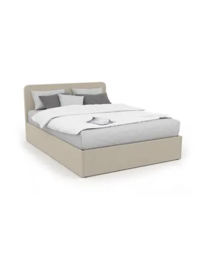Cama cómoda Louise de tela beige con somier y cabecero redondeado 140x190 cm