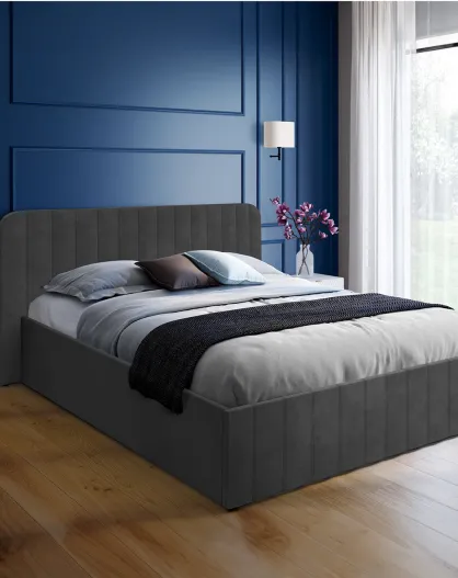Cama baúl Valentina de terciopelo gris con somier y cabecero 160x200 cm