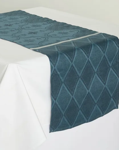 Camino de mesa 100% lino con escudo azul, 40 x 320 cm