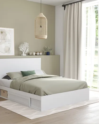 Cama Orem con somier, cabecera y cajón blanco incorporado 140x190 cm