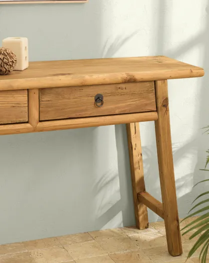 ANDRIAN - Consola con 2 cajones de madera de pino reciclada