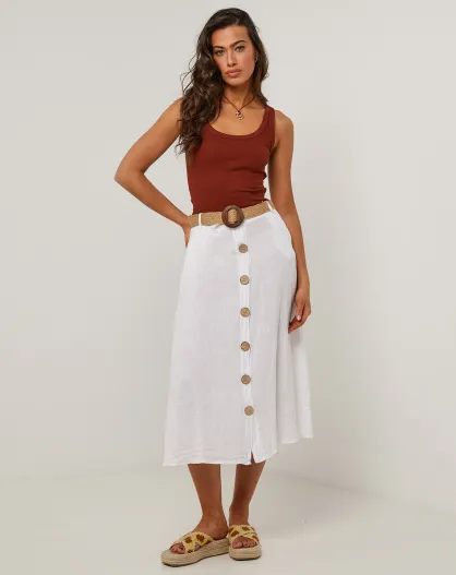 Falda larga Eva White 100% lino
