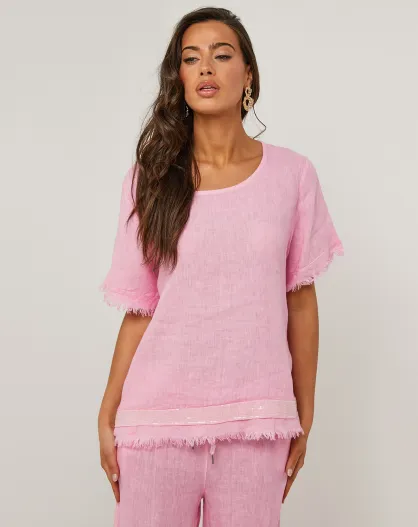 Túnica rosa rosa 100% lino