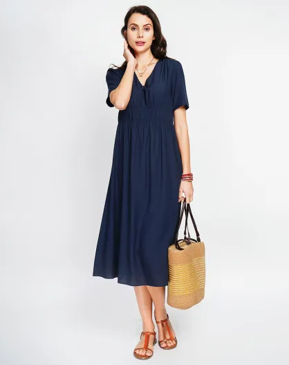 Vestido Lana en mezcla de lino azul marino