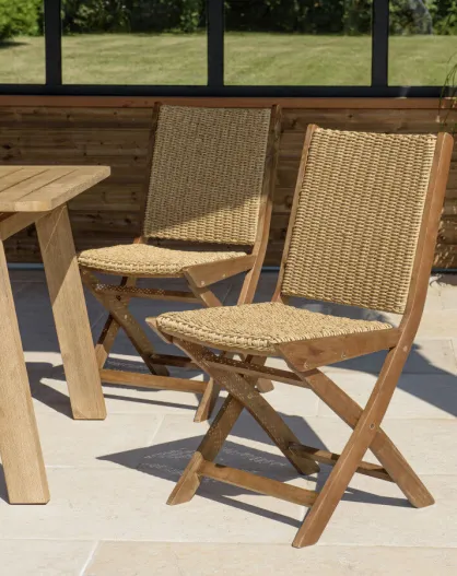 VICTOIRE - Set de 2 sillas plegables de acacia engrasada y ratán sintético