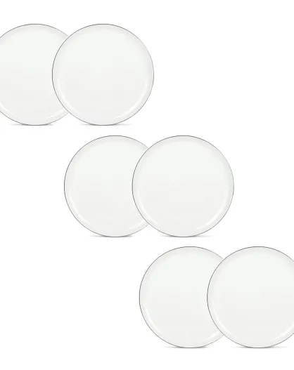 6 platos llanos de porcelana Selene plateados - D.27 cm