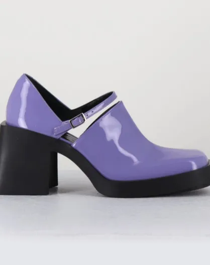 Zuecos Kim Lilac de charol, tacón de 8 cm