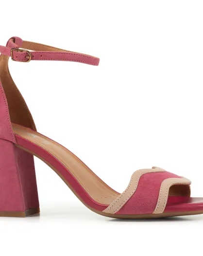 Sandalias Nicole de piel aterciopelada fucsia - Tacón 7 cm
