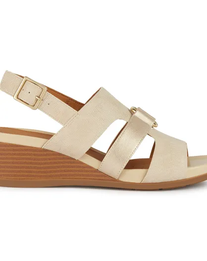 Sandalias de cuña Marykarmen en arena y oro claro, tacón de 5,5 cm