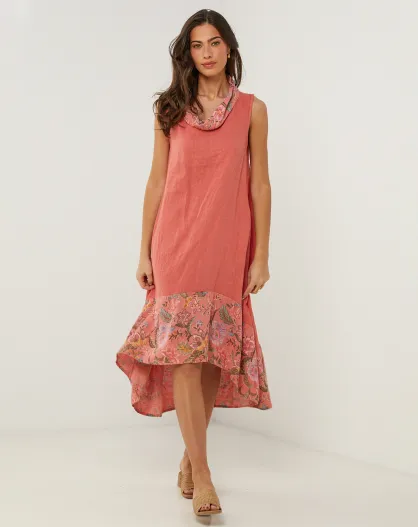 Vestido Anais coral 100% lino