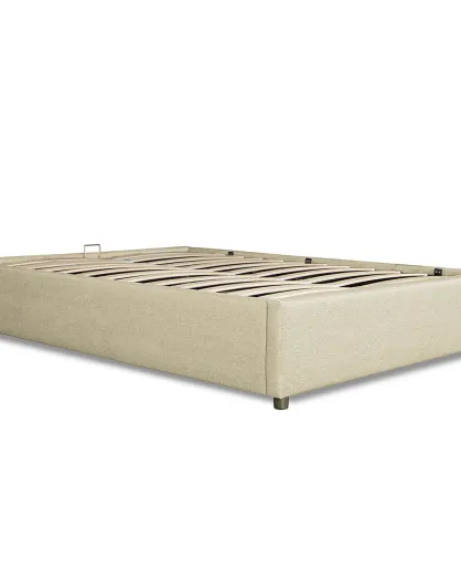 Cama tipo baúl Otto de tela con somier beige - 140x190 cm