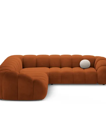 Sofá de esquina izquierda Lyna Velvet, 4 plazas, terracota, 280 x 182 x 72 cm