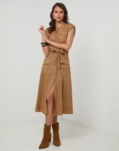 Vestido Perrine camel 100% lino