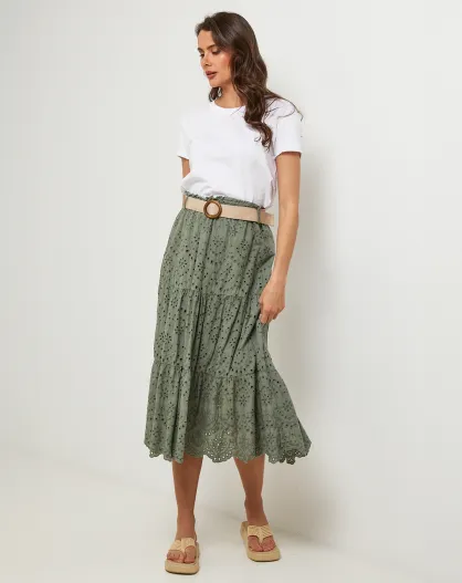 Falda Agathe caqui 100% lino