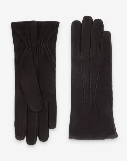 Guantes de piel de gamuza de cordero - 100% poliéster (boa) -71094BA-Choco