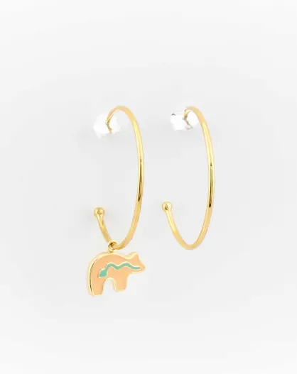 Pendientes de plata y latón Pendientes de aro con forma de oso salmón
