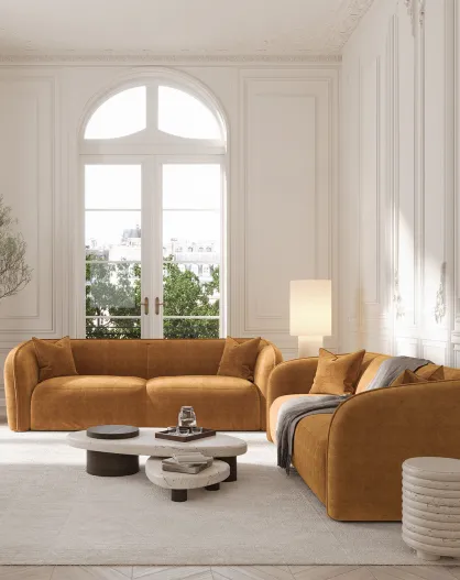 Sofá acogedor de 4 plazas de terciopelo mostaza - 210x112x80 cm