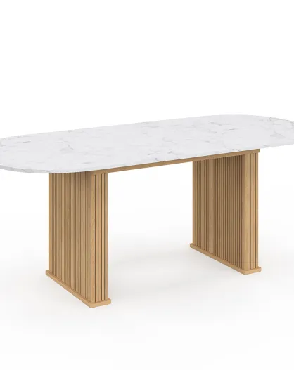 Mesa de comedor ovalada Celeste efecto mármol blanco/negro - 200x90x76 cm
