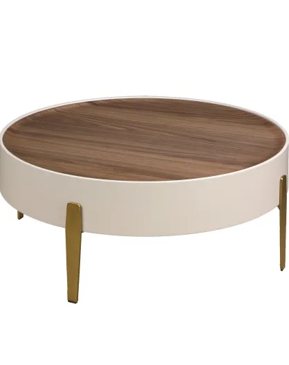 Mesita beige/nogal - 92x92x92 cm