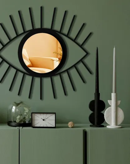 Panel decorativo de pared con espejo dorado/madera natural - 61x61x1,8 cm