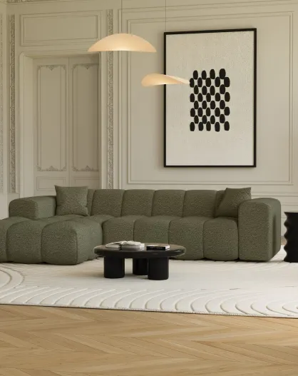 Sofá de esquina izquierda COVA Tejido boucle verde oliva - 290x94x69,5