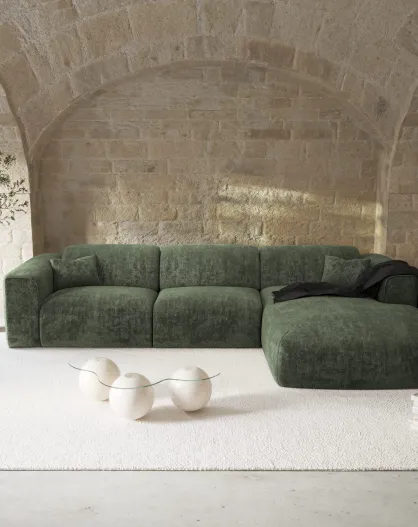 Sofá de esquina izquierda COVA Tejido boucle verde oliva - 290x94x69,5