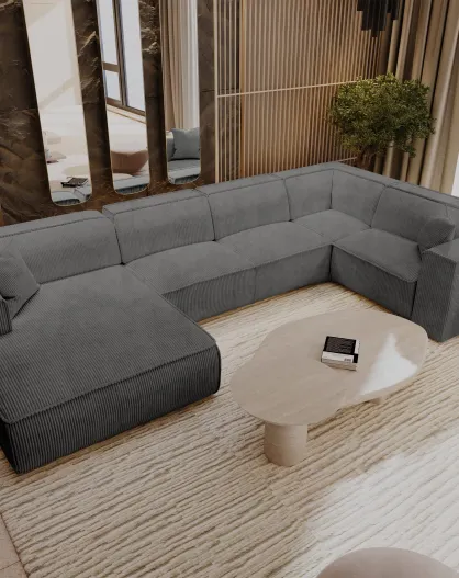 Sofá panorámico XXL con 2 cojines decorativos RUBEN Corduroy gris antracita - 391x173x78