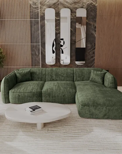 Sofá de esquina izquierda 255cm ROMY Terciopelo tejido verde oliva - 255x160x70