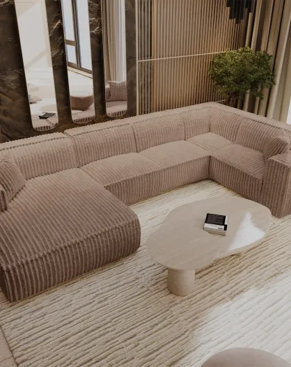 Sofá panorámico con cojines LIAM Velvet weft Beige - 346x166x76
