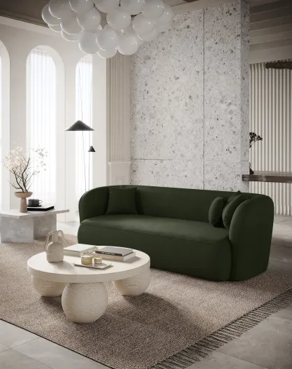 Sofá COVA de 4 plazas Tejido rizado verde oliva - 247x94x69,5
