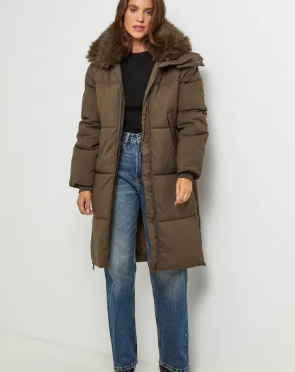 Chaqueta larga reversible Cécile Khaki con capucha