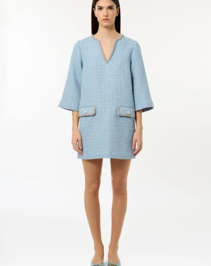 Elegante vestido de tweed azul