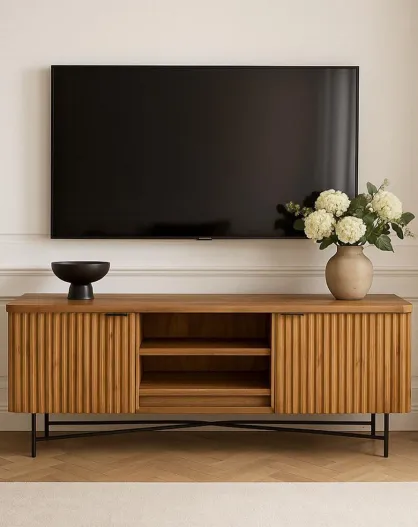 Céline - Mueble de TV de madera de mango con tapa de mármol 150 cm