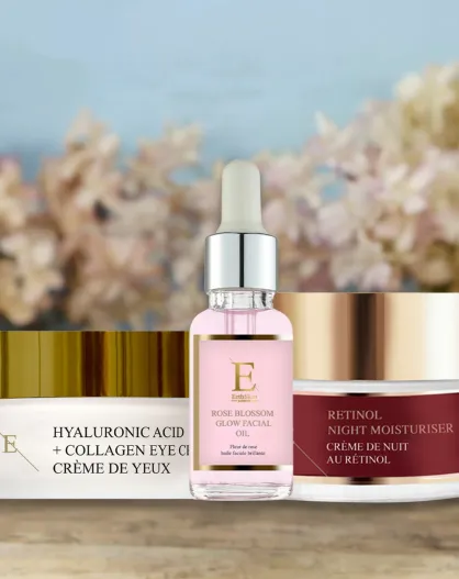 Set de crema de noche con retinol, crema antienvejecimiento para contorno de ojos y aceite facial Pink Glow, 3 unidades