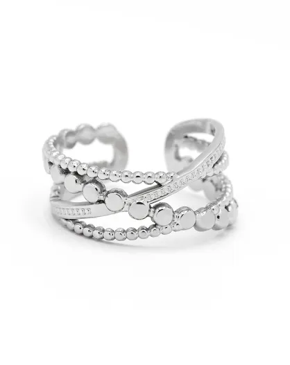 Anillo redondo blanco natural de perlas cultivadas en agua dulce y plata